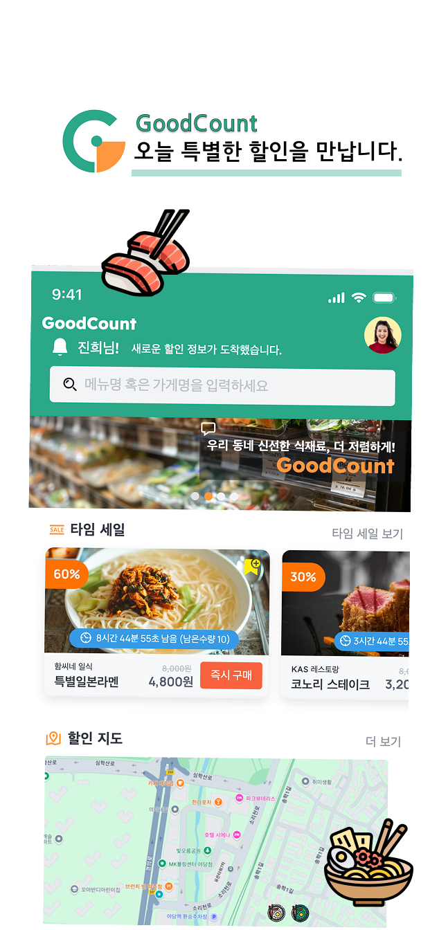 굿카운트는 소상공인을 위한 주문 플랫폼입니다. 소비자에게 저렴하고, 양질의 주문 서비스를 제공하며, 소비자와 소상공인을 연결하는 원스톱 솔루션을 구현했습니다.