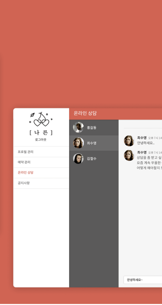 나른은 심리 상담사 중개 플랫폼입니다. 심리 상담사를 중개하는 플랫폼입니다.