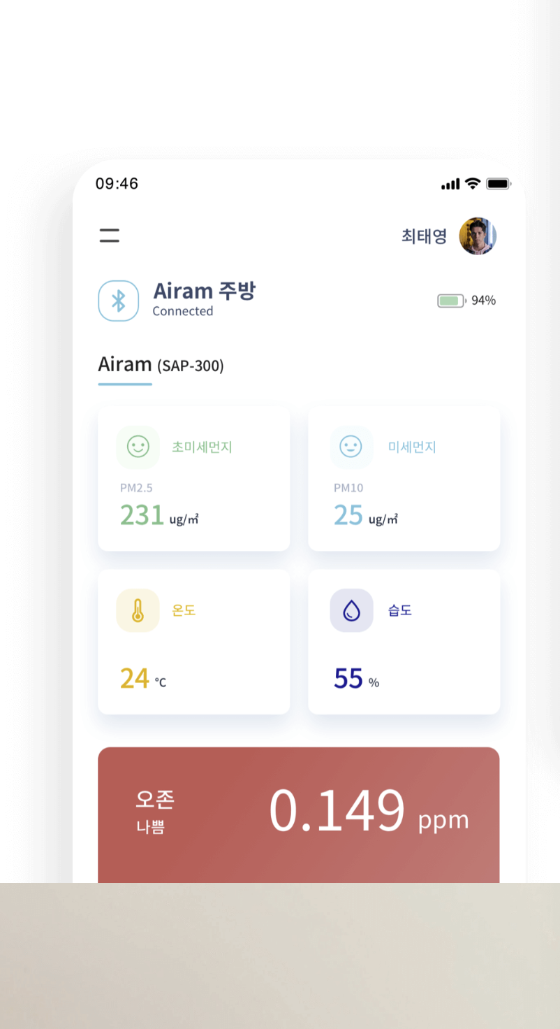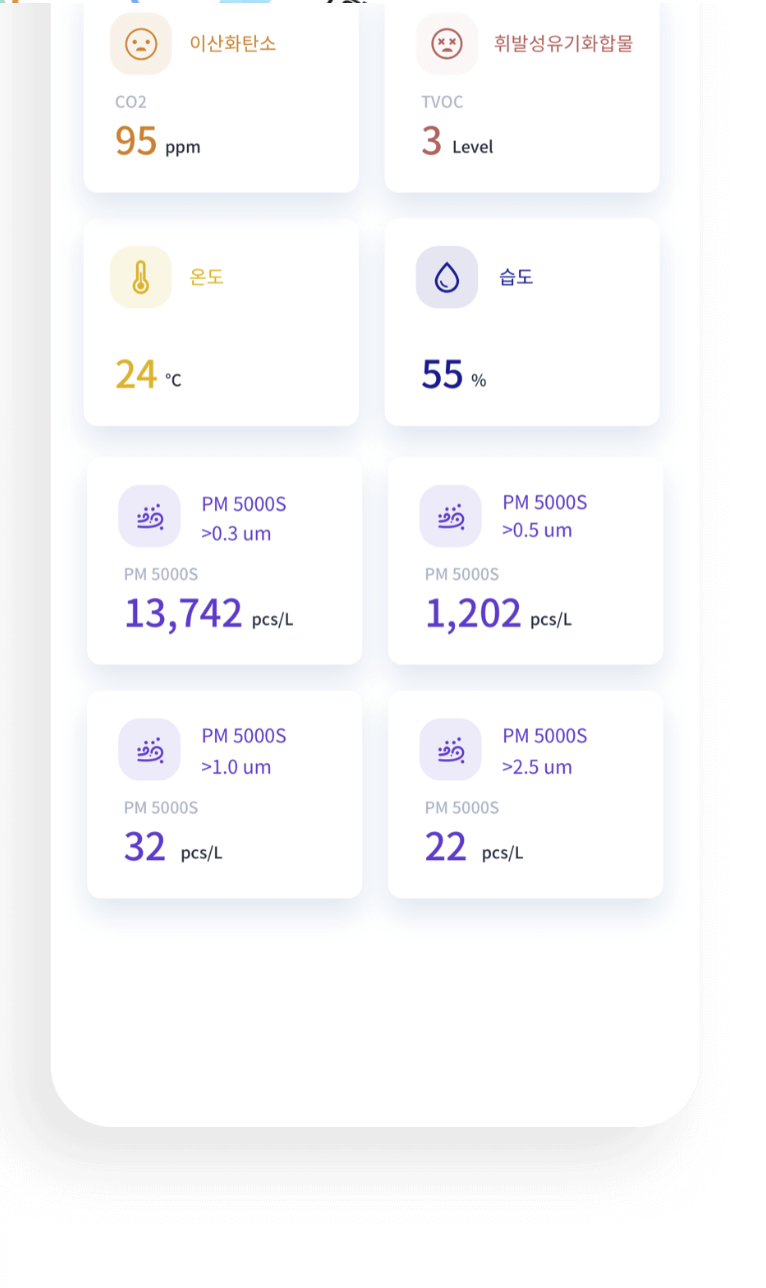 에어람은 IoT 기반 서비스로 회원들이 실내 공기 오염도를 측정할 수 있습니다. 실내 공기 오염도를 측정하여 회원들에게 알림을 전송할 수 있습니다.