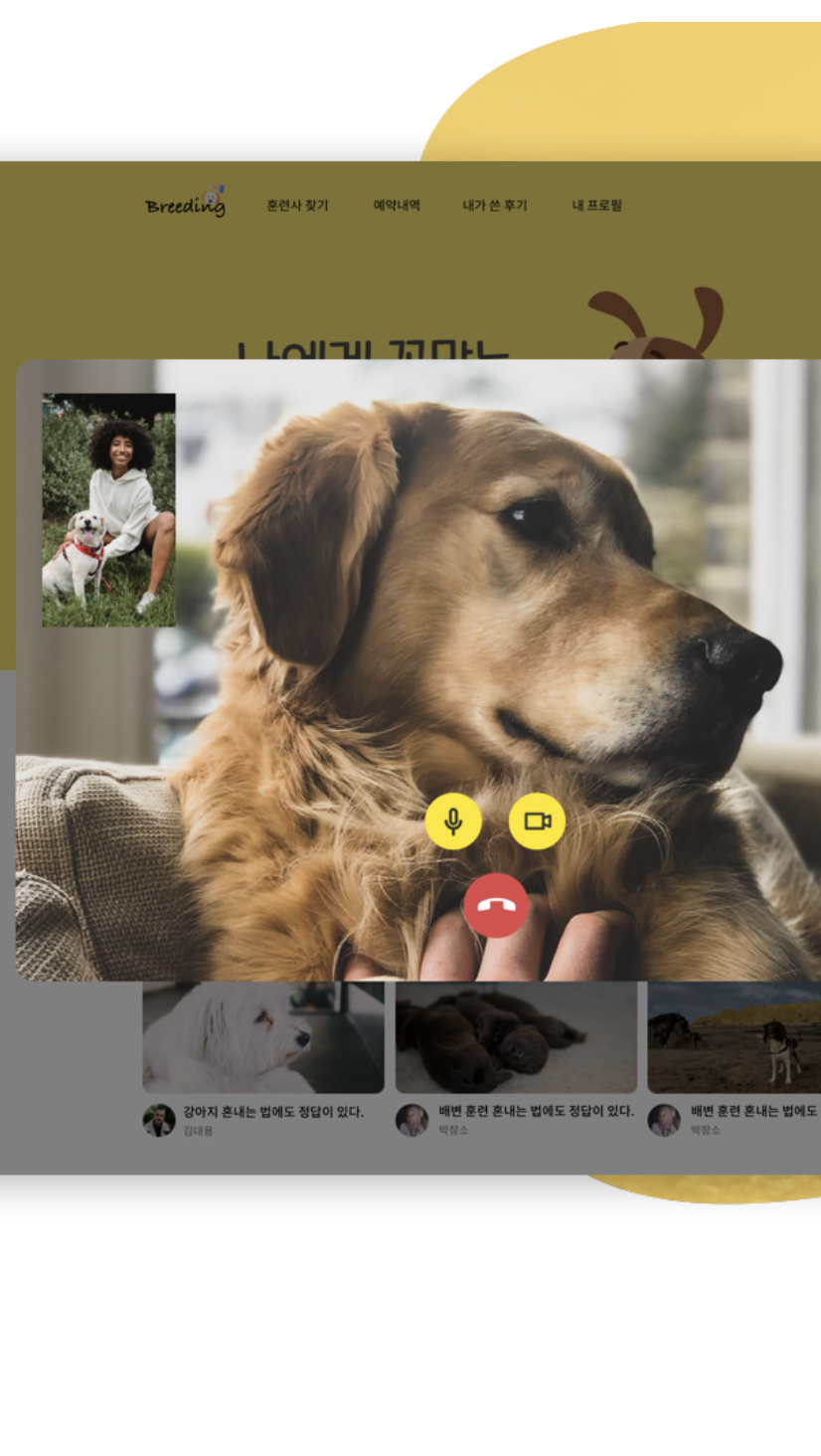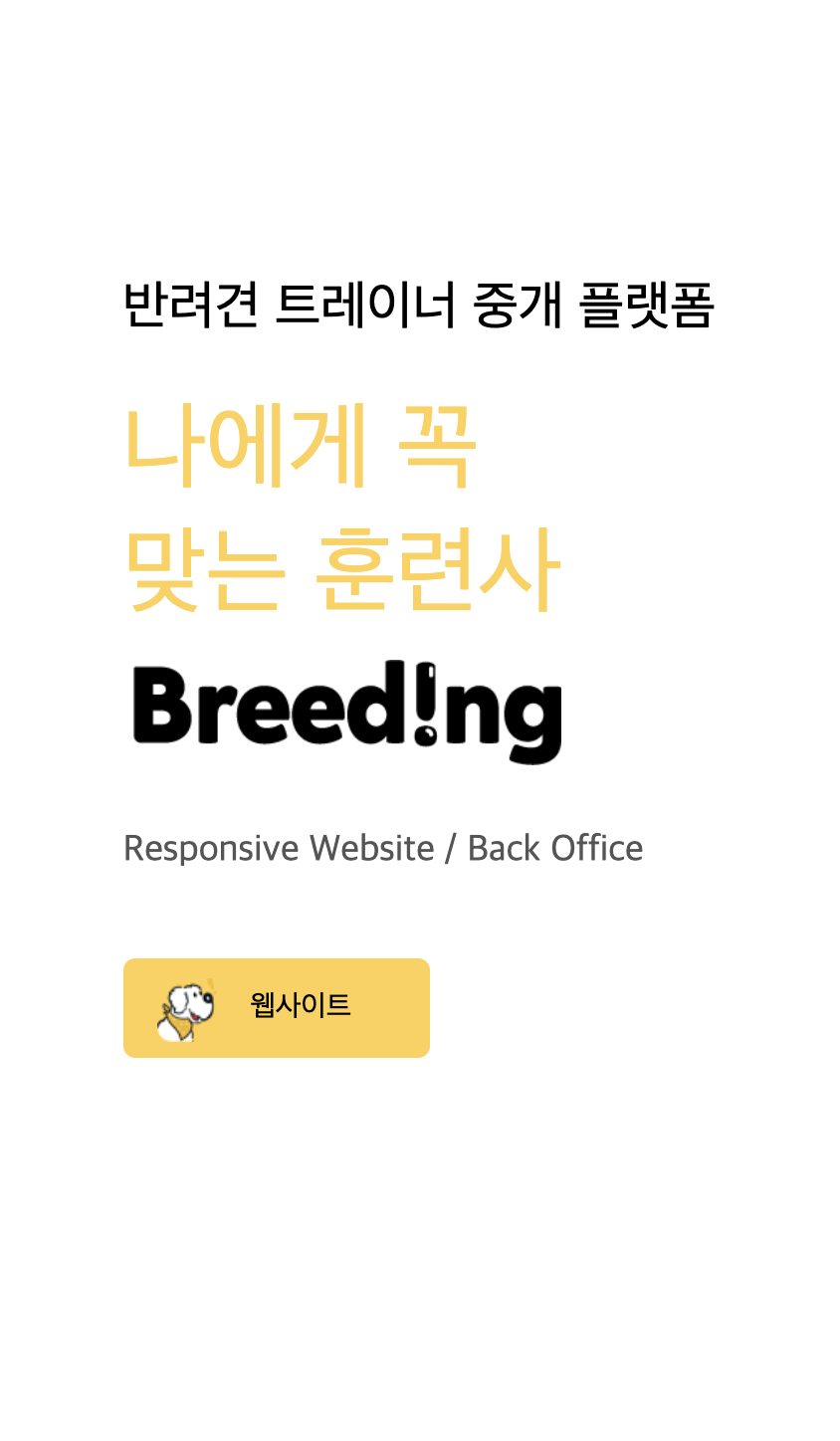 브리딩은 반려견 훈련을 위한 트레이너와 소비자를 연결하는 반려견 트레이닝 매칭 중개 플랫폼입니다. 소비자는 자신의 반려견에 맞는 트레이너를 찾을 수 있으며, 트레이너는 자신의 서비스를 홍보할 수 있습니다.