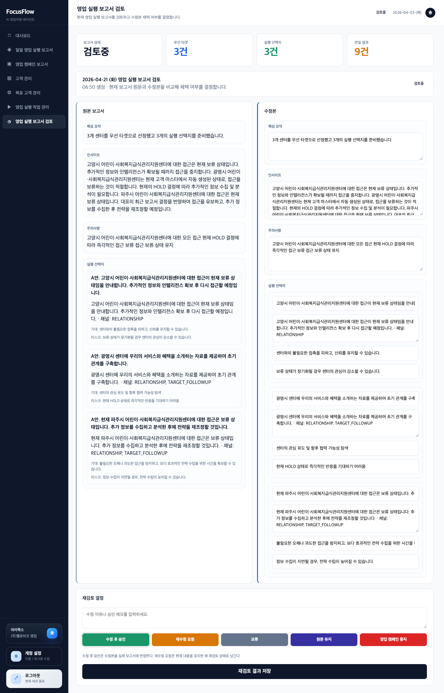 매일 실행 가능한 영업 전략과 캠페인 계획 제공