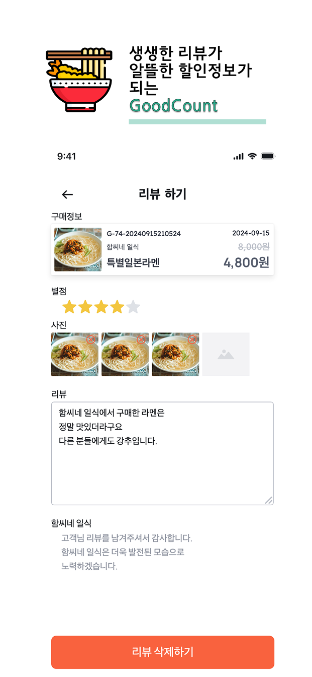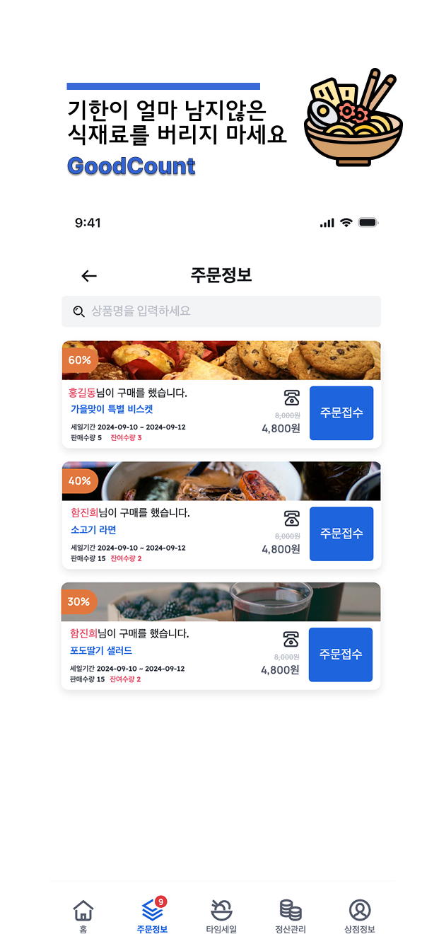 굿카운트는 소상공인을 위한 주문 플랫폼입니다. 소비자에게 저렴하고, 양질의 주문 서비스를 제공하며, 소비자와 소상공인을 연결하는 원스톱 솔루션을 구현했습니다.